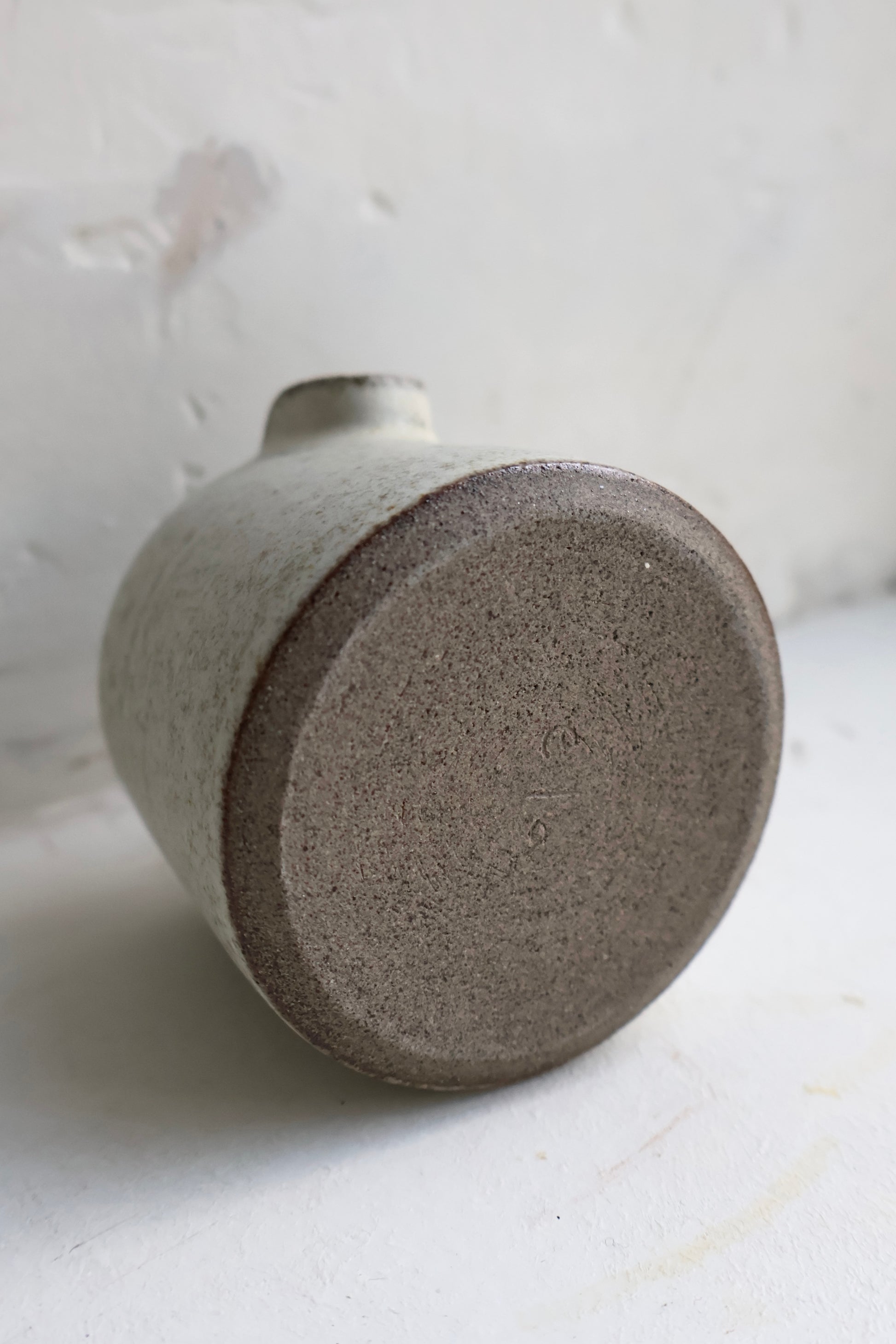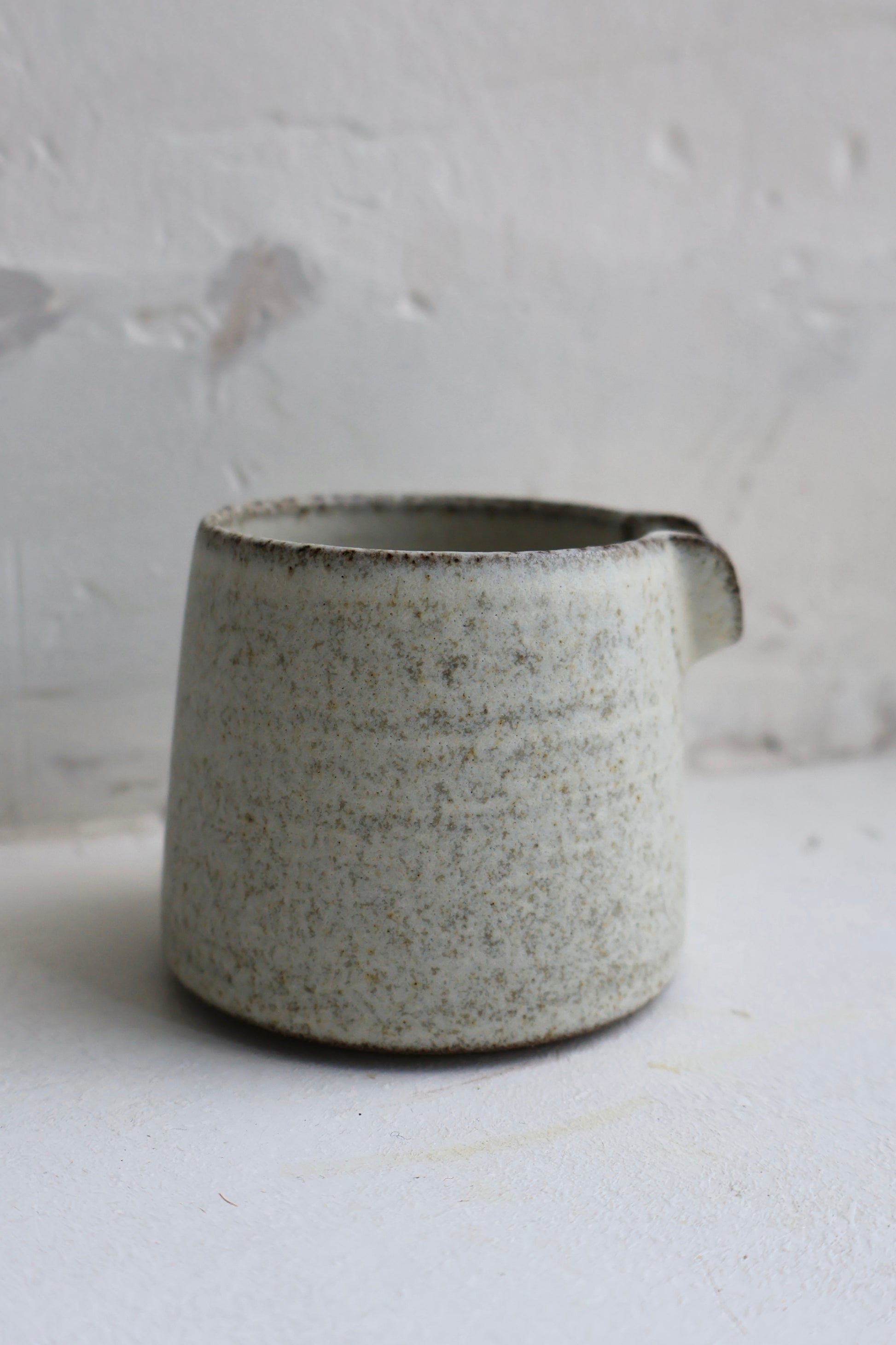 Tiny jug glazed in a matte off-white glaze.