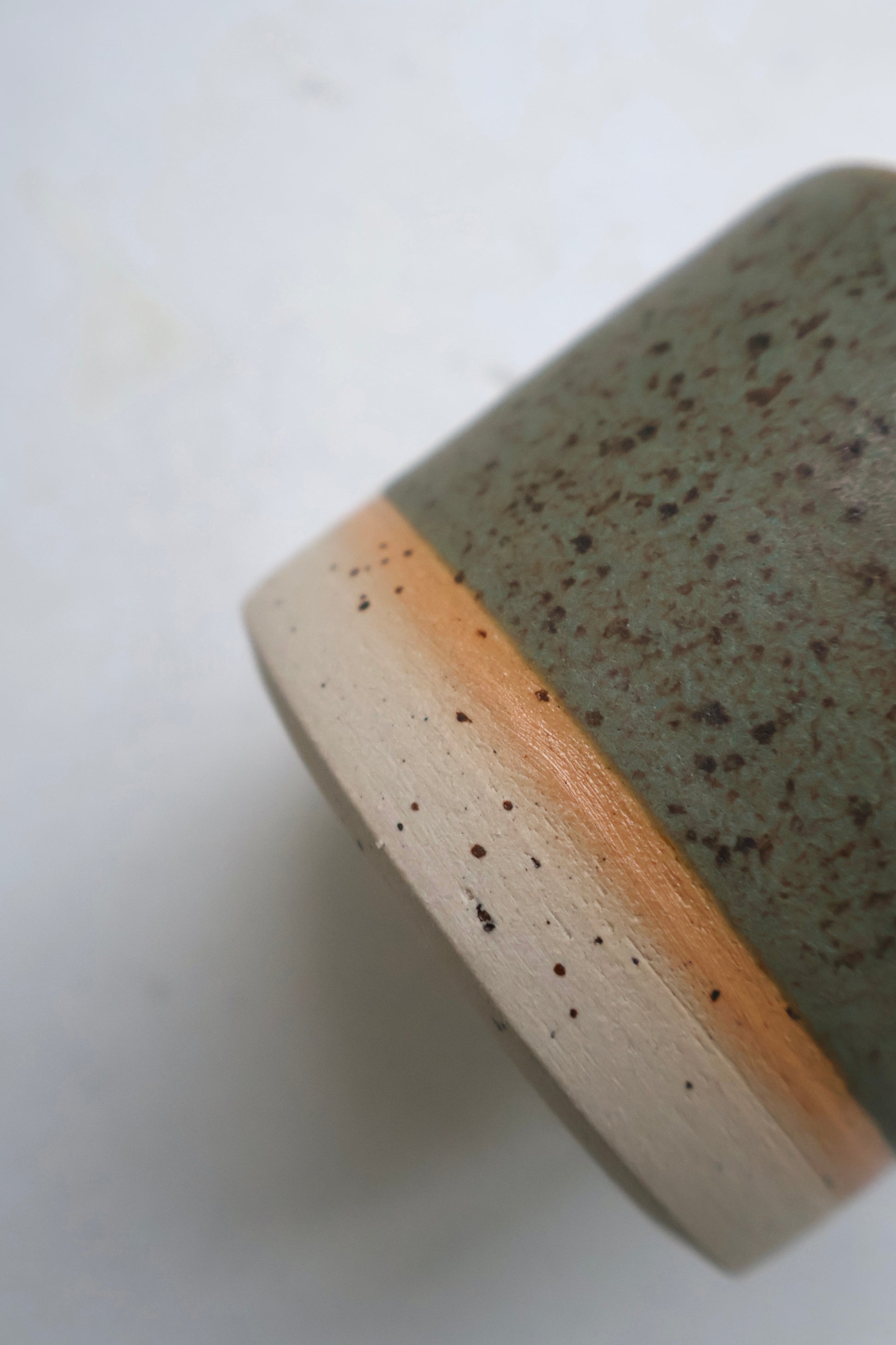 Tumbler glazed in a matte green glaze on the outside and matte white with a shiny white in the bottom.